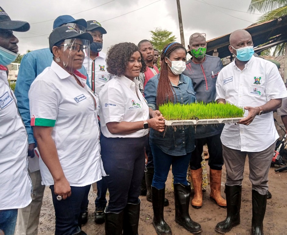 The Acting Honourable Commission for Agriculture, Ms. Abisola Olusanya accompanied by the Permanent Secretary, Dr. Olayiwole Onasanya and Management of the Lagos APPEALS Project today inspected Blessed Farmers in Gayingbo, Badagry, a cluster of rice farmers who were supported.