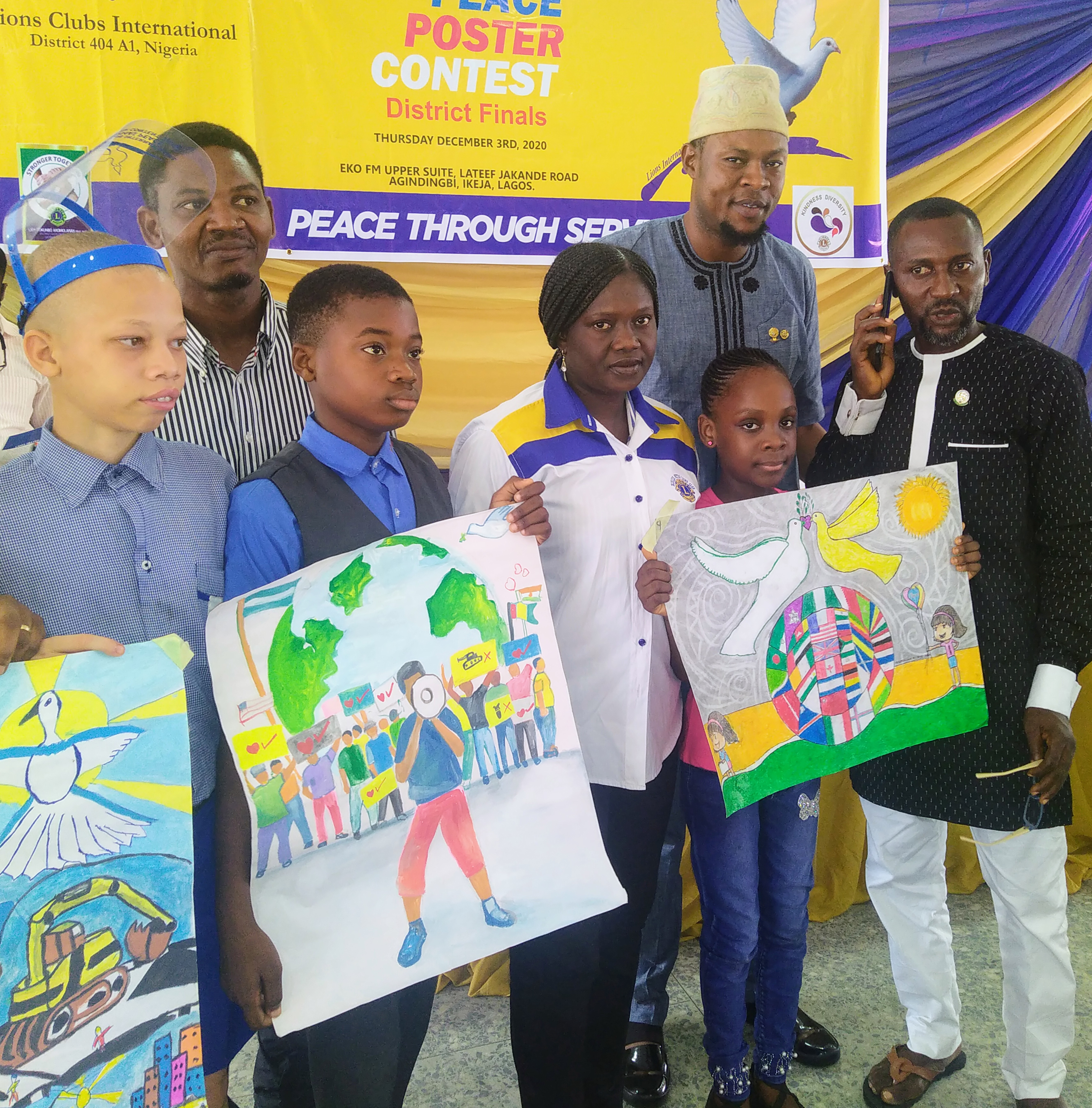 Lions Club International Hosted Children From West Hall College Ikorodu, Vetland Primary School Okooba, Jibowu Junior High School, Aladura Comprehensive School Anthony, United Junior High School Ikorodu, Ebenezer Comprehensive School Ijaiye, Escravos School, Boys Junior Academy Lagos Island, M&M Private School Iseri & Sanctum Start Up College Opic Estate in Lagos State As it Organised The Year 2020-2021 Peace Poster Contest At Eko FM, In Ikeja Lagos.