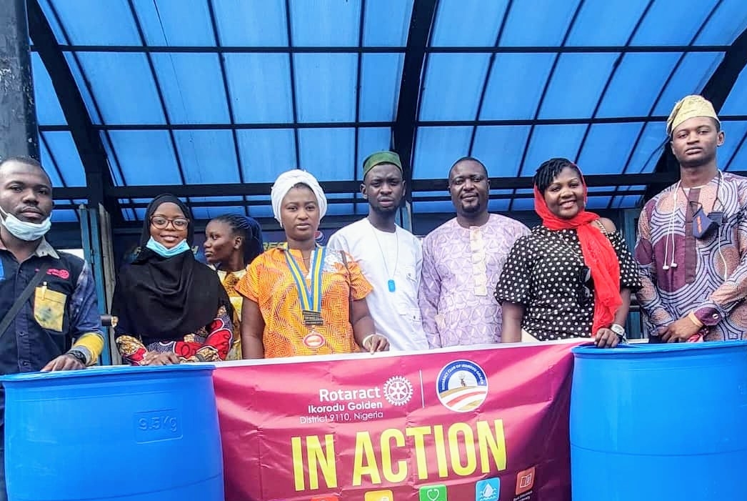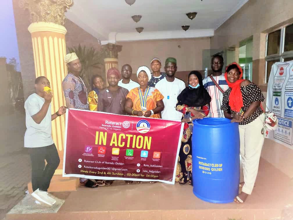 The Rotaract Club of Ikorodu Golden District 9110 donated two waste bins to the BRT Terminal at Ikorodu Garage for use by the commuters for the purpose of waste Disposals in a bid to have a cleaner and healthier environment.