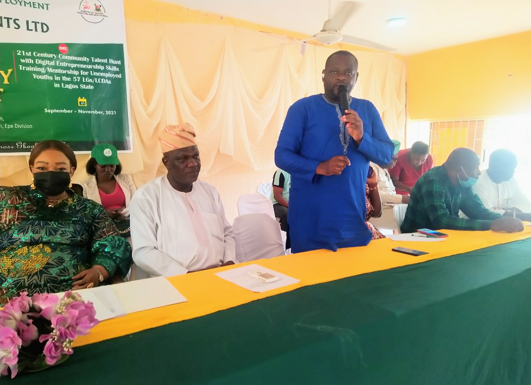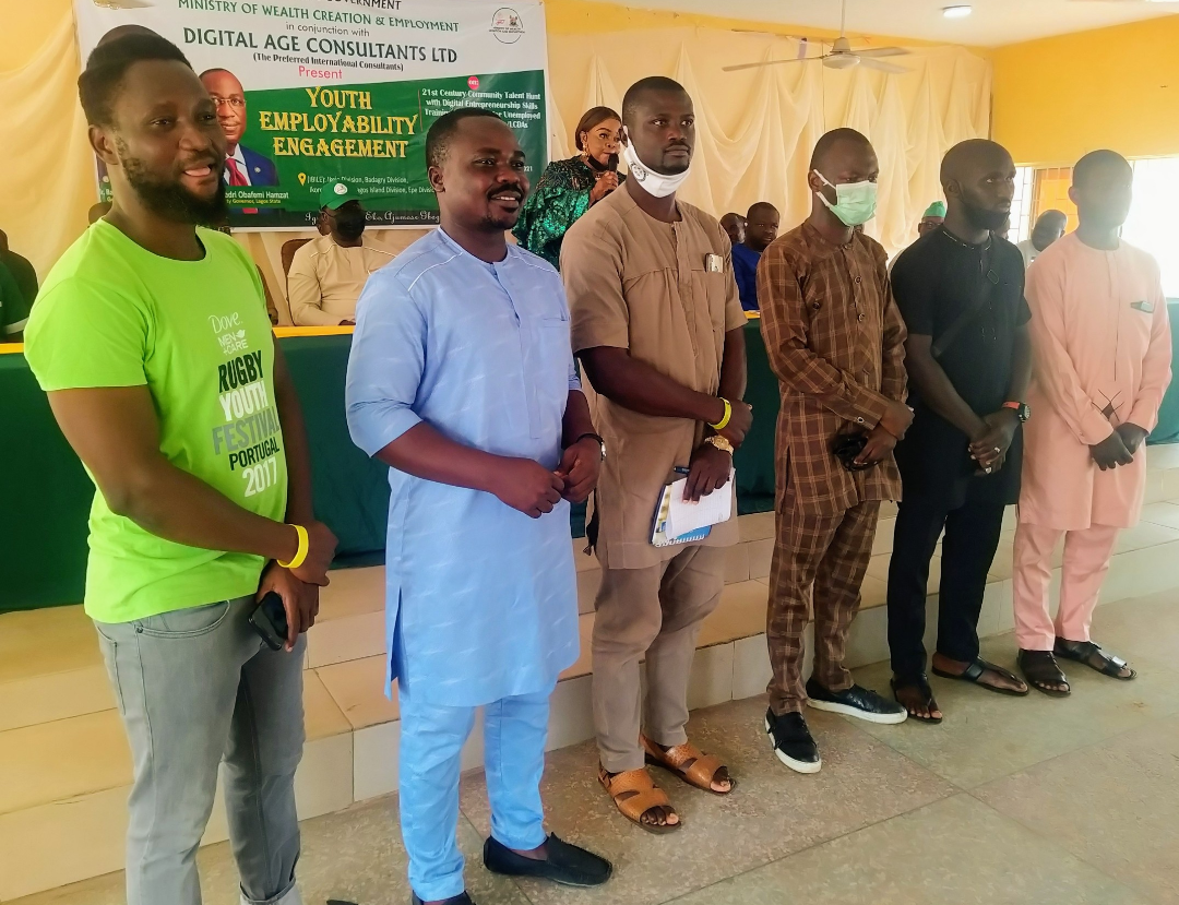Themed “Be Your Own Boss” On 21st Century Community Talent Hunt with Digital Entrepreneurship Skills Training/Mentorship For Unemployed Youths, the event played host to the honorable commissioner for wealth creation and employment, Hon Yetunde Arobieke, local council bosses (including Hon Wasiu Adesina, Bldr Sesan Daini, Hon Sulaiman Olanrewaju, Prince Wasiu Agoro and Mrs Motunrayo Gbadegbo-Alogba) in Ikorodu division and youths across the region at Ikorodu local government secretariat.