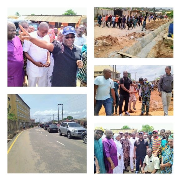Following the completion of the community road construction which was facilitated by Rep. Benson, the national lawgiver touched down on the area, accompanied by his constituency officials and members of his iCare foundation.