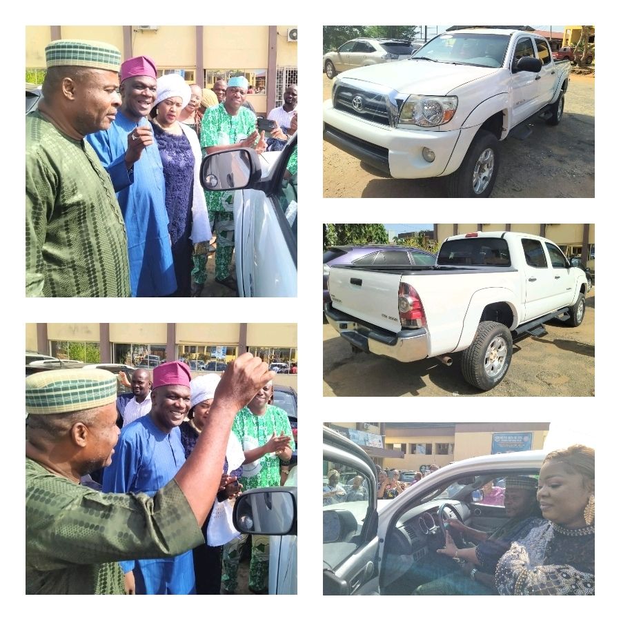 Displaying appreciation and recognition, the Executive Chairman of Ikorodu Local Government, Hon. Wasiu Adesina, presented a brand new Toyota Tacoma truck to the departing Council Manager, Engr. Martins Odupitan.
