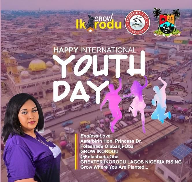 In celebration of International Youth Day, Aarebirin Hon. Princess Dr. Folashade Olabanji-Oba, National Chairman of the Association of Local Government Vice Chairmen in Nigeria (ALGOVC) and Vice Chairman of Ikorodu Local Government, extended heartfelt greetings to the vibrant and energetic youths of Ikorodu and Nigeria as a whole.