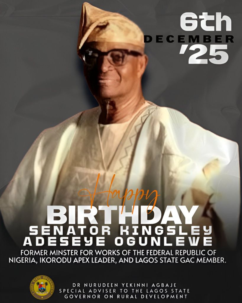 The Special Adviser to the Lagos State Governor on Rural Development, Dr. Nurudeen Yekinni Agbaje, has extended warm felicitations to Senator Kingsley Adeseye Ogunlewe, former Minister for Works and revered Apex Leader in Ikorodu Division, as he marks his 82nd birthday.
