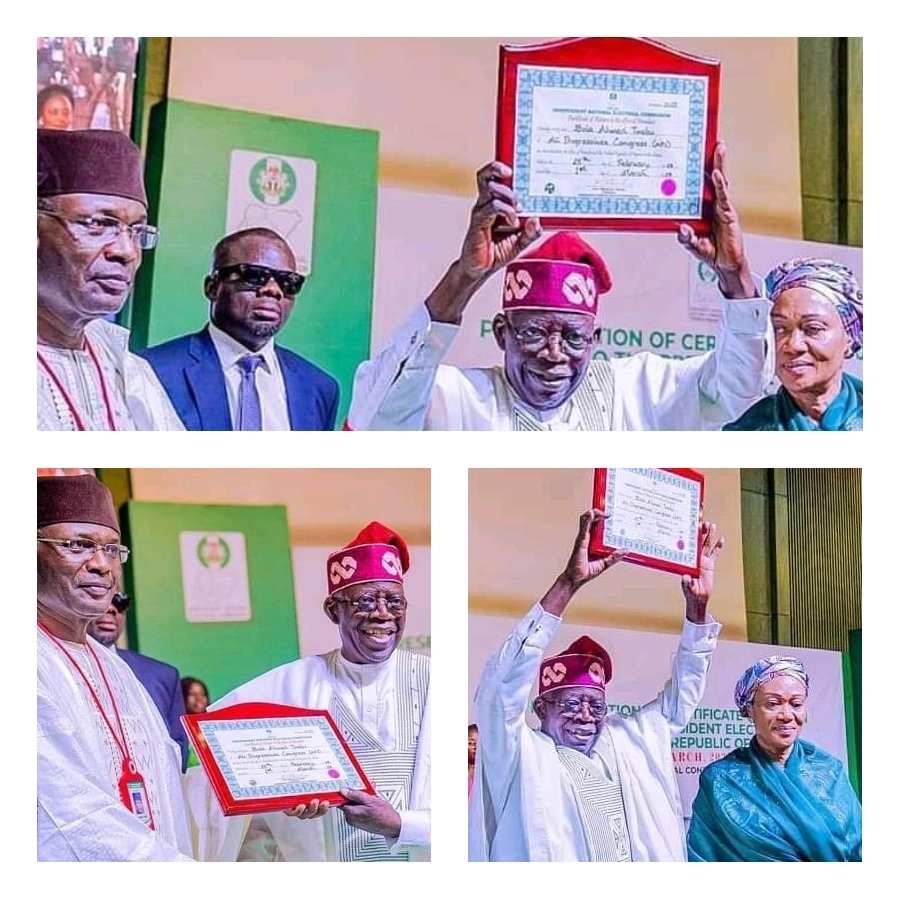 PHOTOCAP: ASIWAJU BOLA AHMED TINUBU RECEIVES CERTIFICATE OF RETURN FROM INEC ®™√ INN Nigeria ©